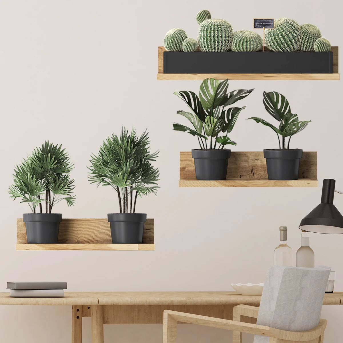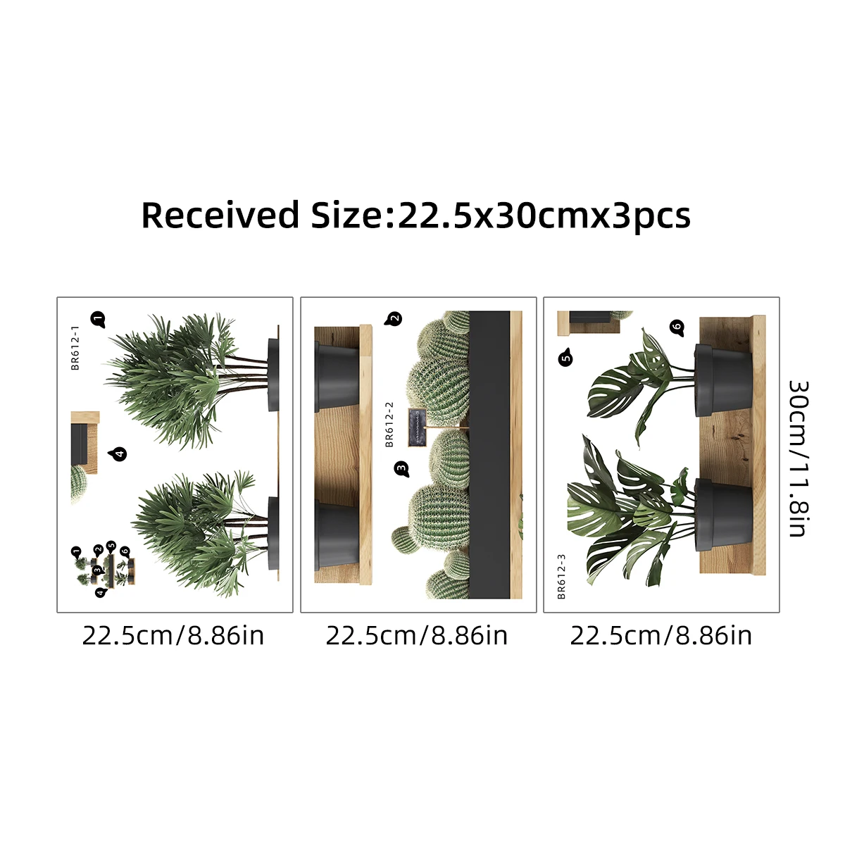 3PCS Green Plant Cactus Potted Wall Stickers for Bedroom Living Room Bathroom Home Decoartion Wall Decals quantity
